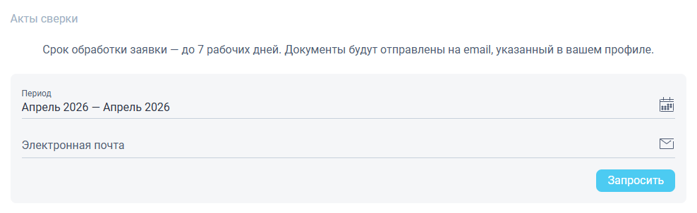 Акт сверки создается по запросу. Чтобы получить этот документ: