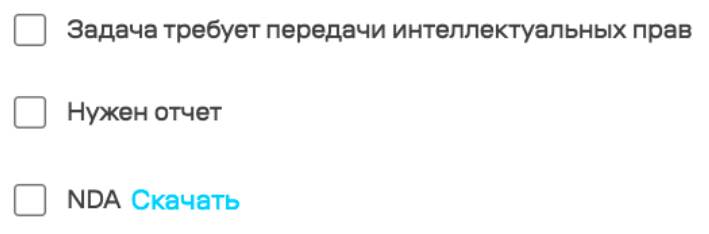 Авторские права — если задача требует передачи интеллектуальных прав от исполнителя. В этом случае исполнитель должен приложить результат работы в системе (файлом или ссылкой)
