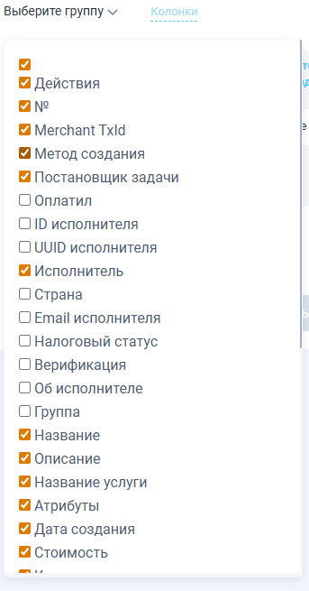 Для удобства работы со списком задач вы можете настроить отображаемые столбцы. Нажмите «Колонки», выберите нужные значения и нажмите «Сохранить».