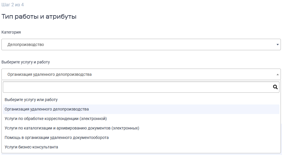Допустим, вы выбрали услугу Организация удаленного делопроизводства.